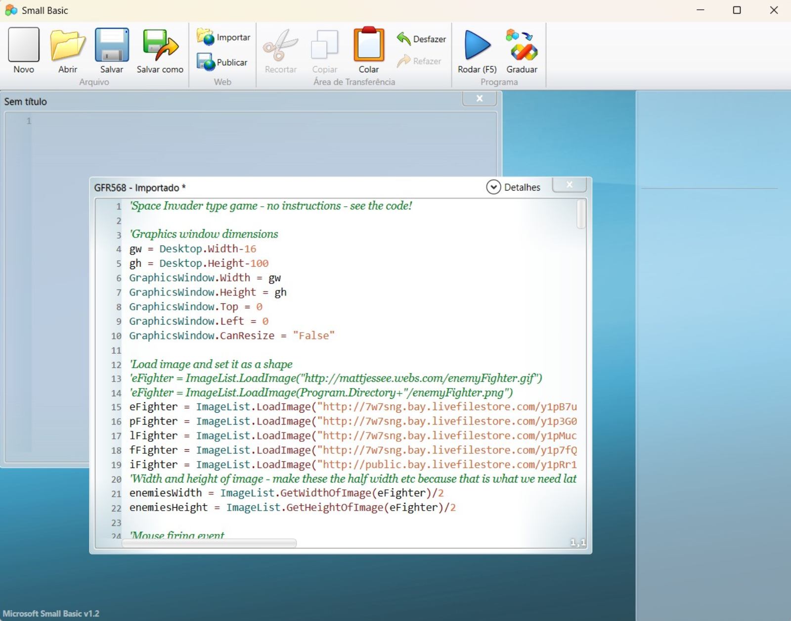 O aplicativo utilizado para prática e aprendizagem é o Microsoft Small Basic, que é uma versão simplificada do BASIC de 2008 desenhada para uma fácil aprendizagem dos conceitos básicos de programação, tanto a crianças como adultos. Contém apenas 14 palavras-chave e sua programação usa o idioma Inglês, que é o idioma universal para programação de jogos.